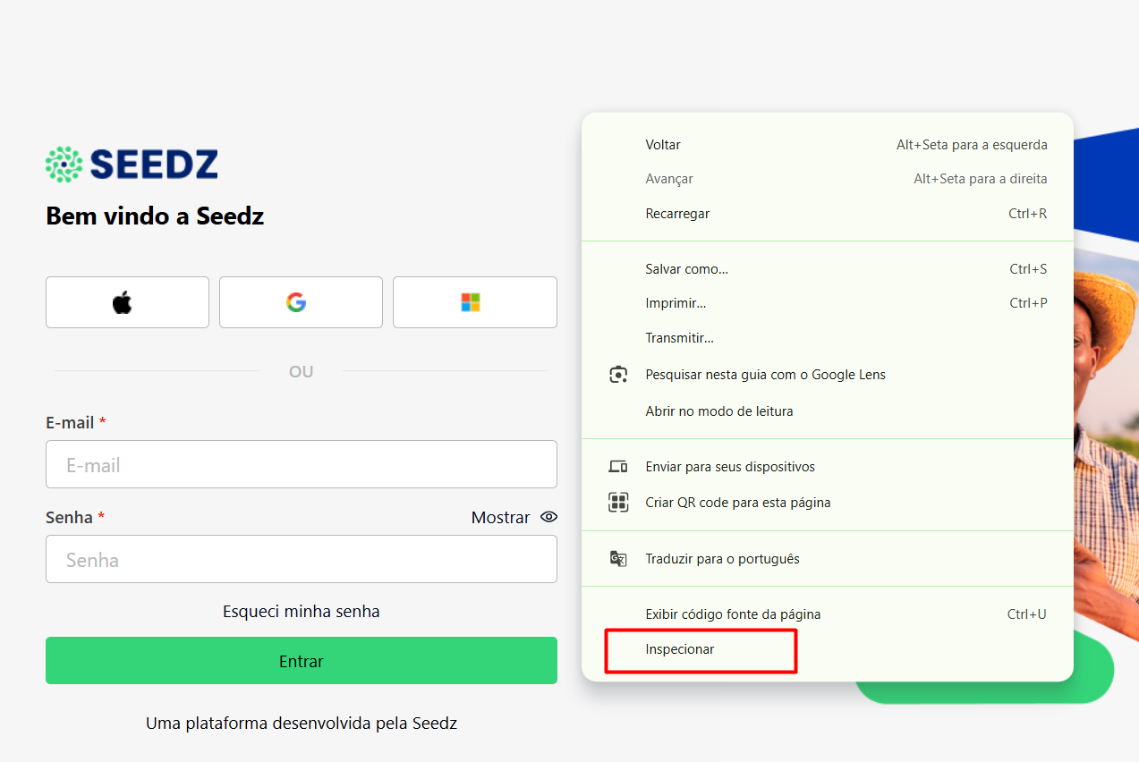 Vai aparecer um menu. Clique na última opção lá embaixo, chamada Inspecionar.