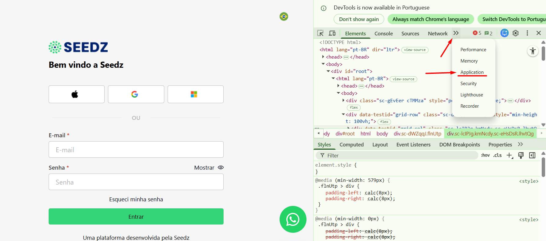 Passo 2: Encontrando a aba "Application" (Aplicativo)